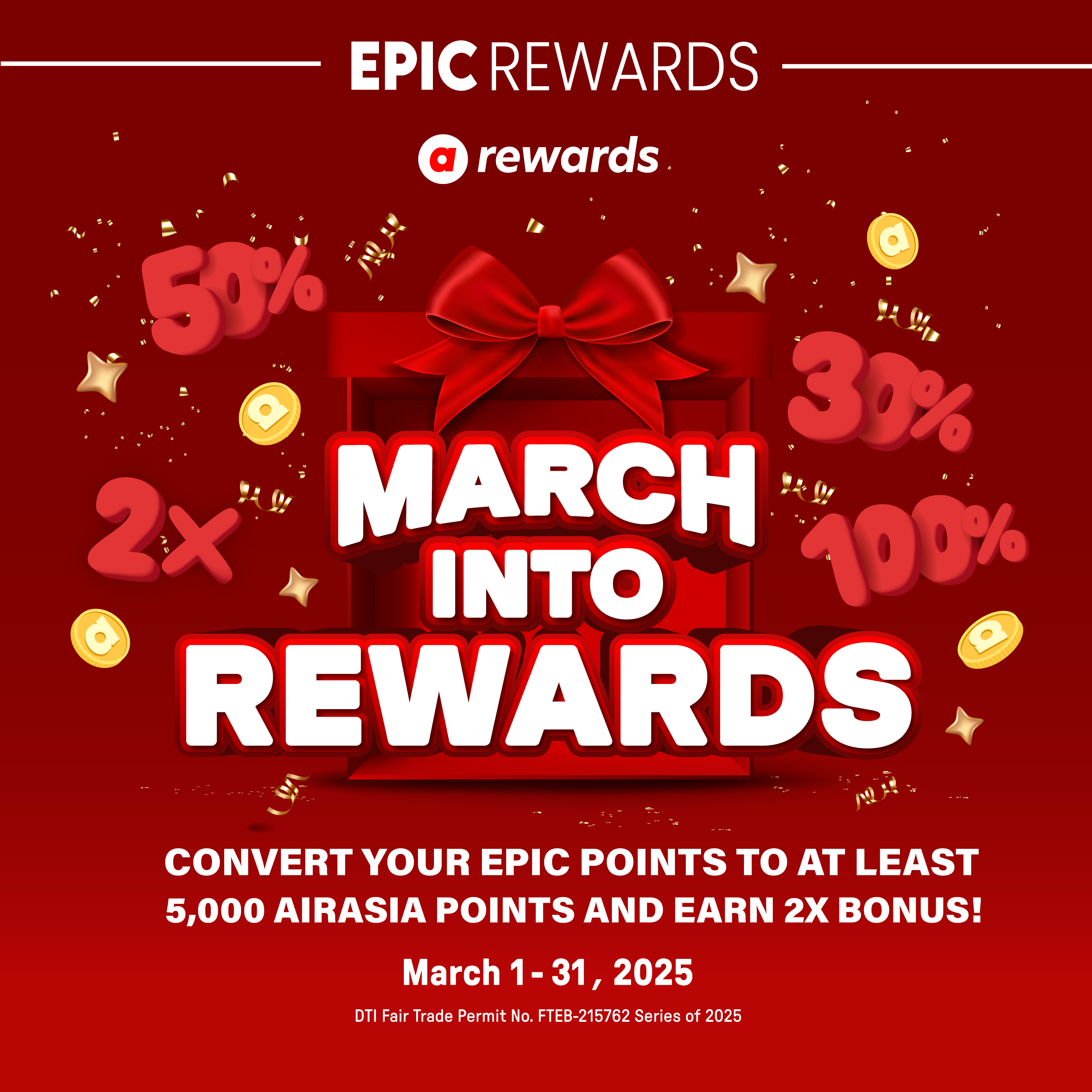 Get 100% bonus AirAsia Points when you convert your Epic Points.