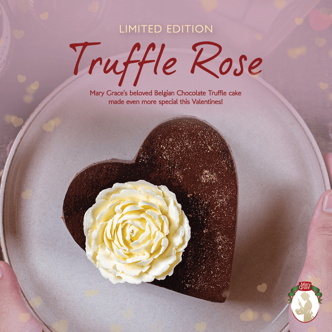 メリーグレイスのトリュフ・ローズは、ベルギー産チョコレートのトリュフケーキです。
