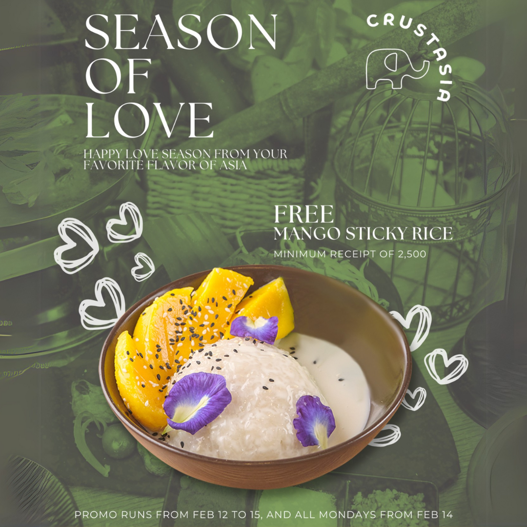 お得な情報です!クラスタジアで2,500PHP以上お食事いただくと、タイマンゴースティッキーライスのデザートを無料でお召し上がりいただけます。