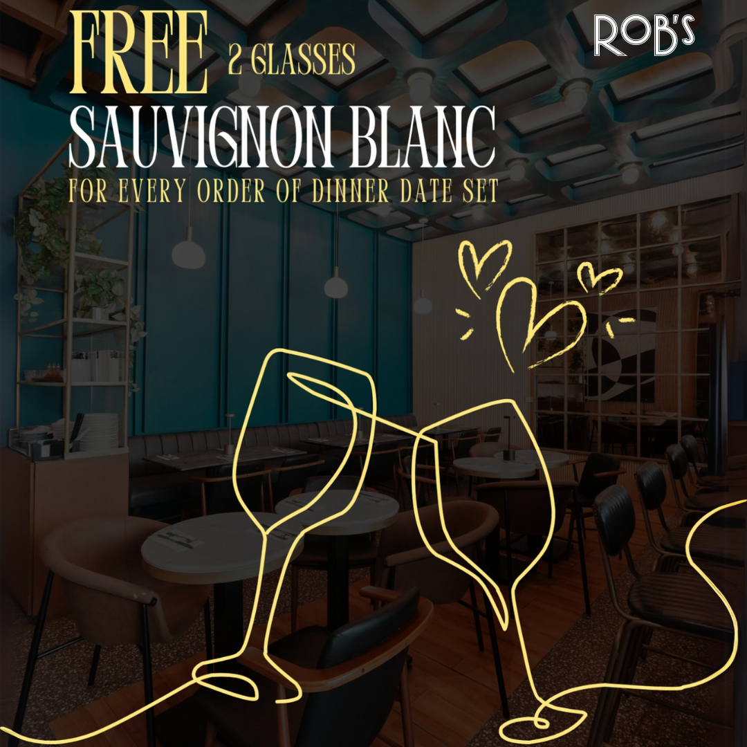 愛と甘いひとときに乾杯!2月16日までの期間中、ロブのバレンタイン・ディナー・デート・セットをご注文いただくと、ソーヴィニヨン・ブランを2杯無料でお楽しみいただけます。